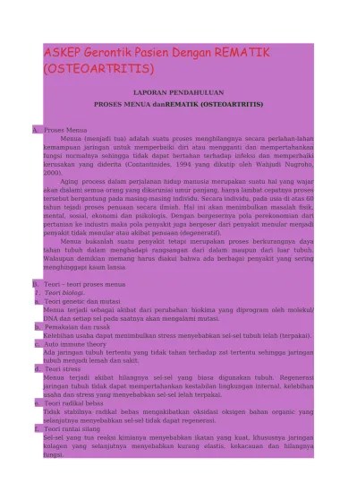 Laporan pendahuluan asuhan keperawatan gerontik lansia dengan masalah rematiknama mahasiswa: